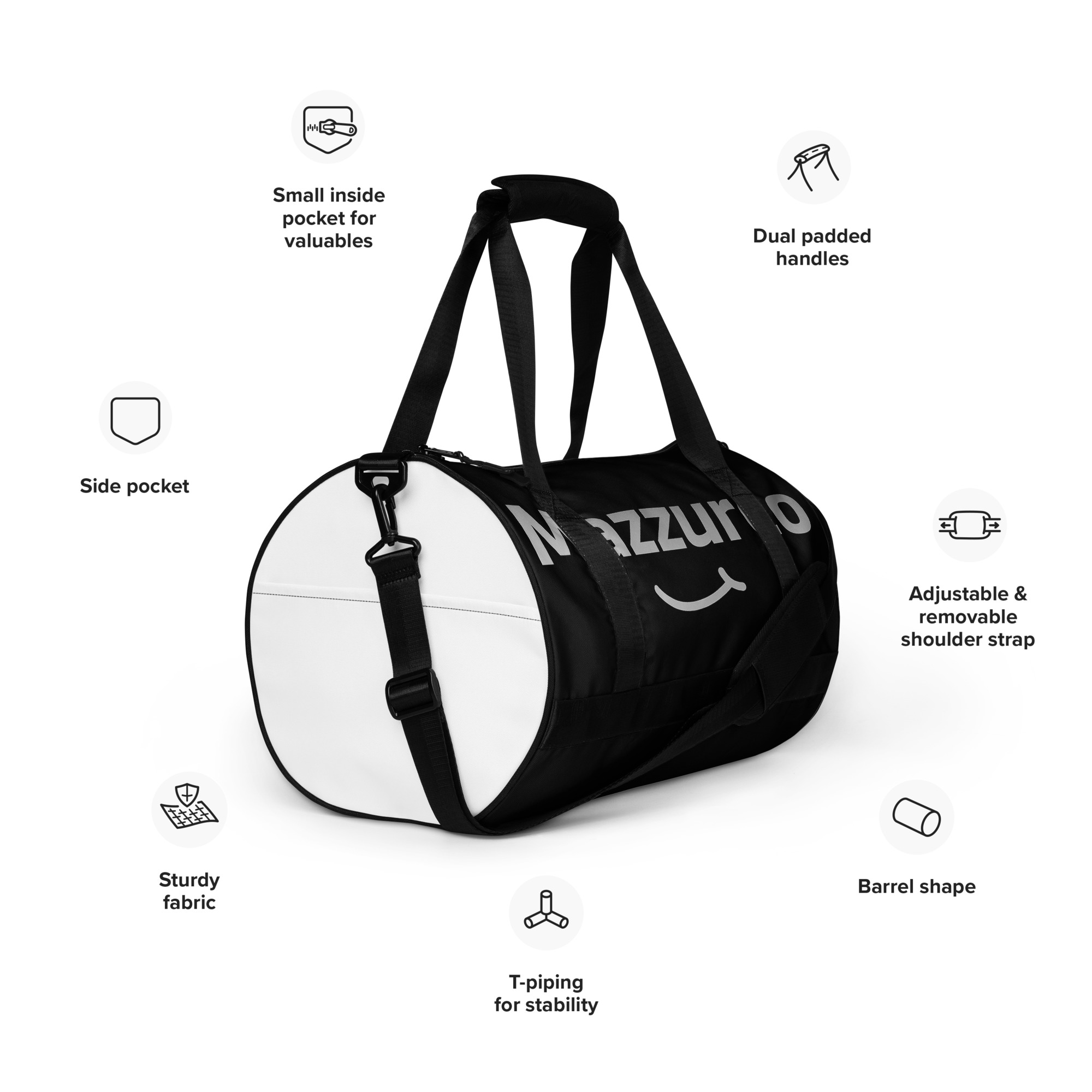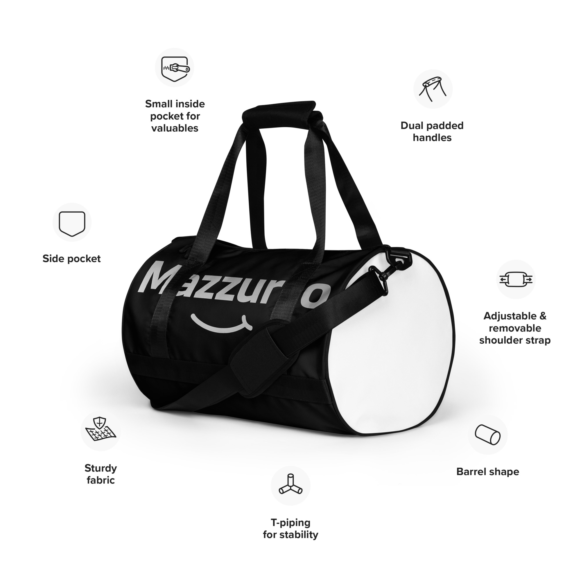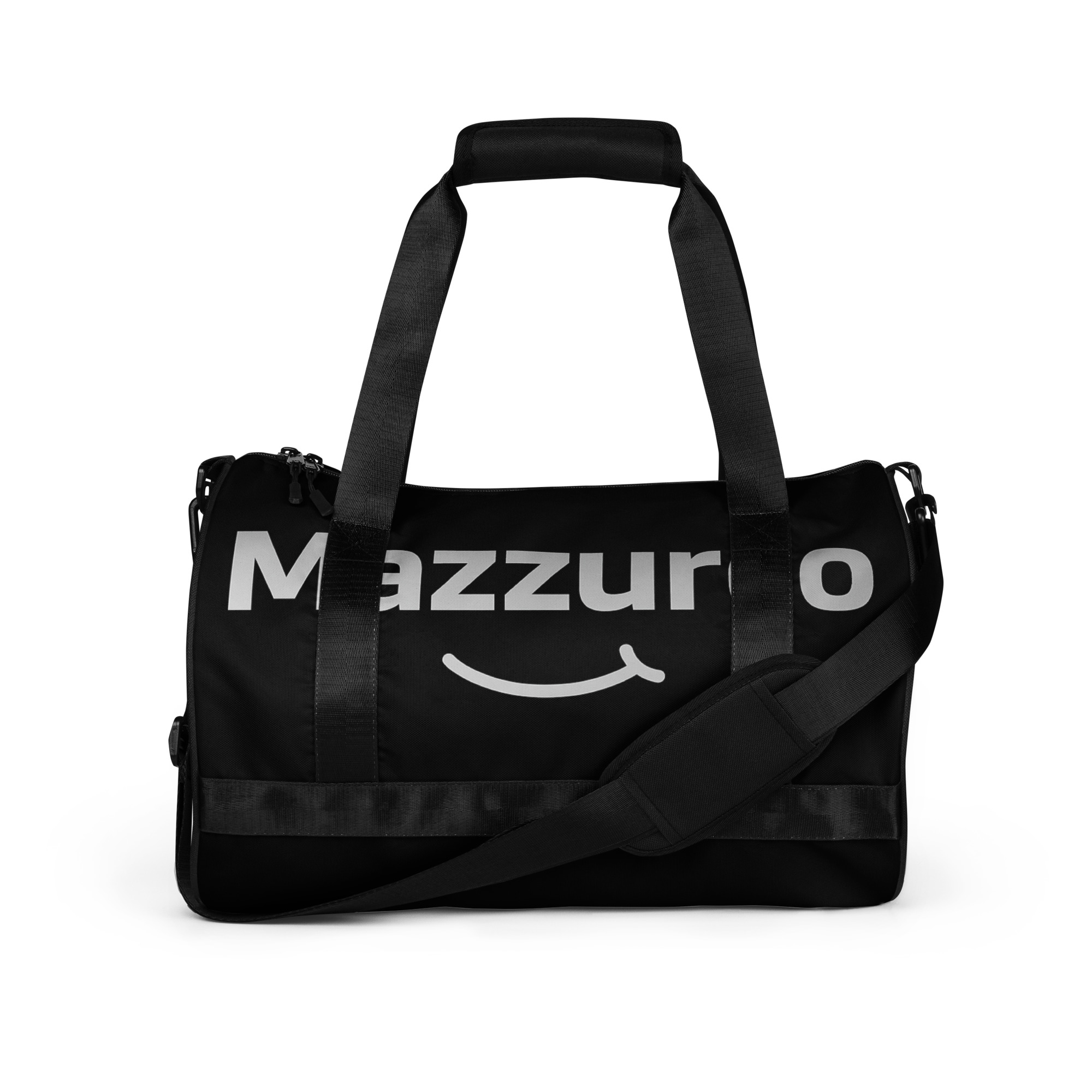 Ready to get your fitness on? Add some punch to pumping iron with this all-over print gym bag. Made from 100% polyester and sturdy, water-resistant fabric, this bag is fun meets function. And it’s got pockets!