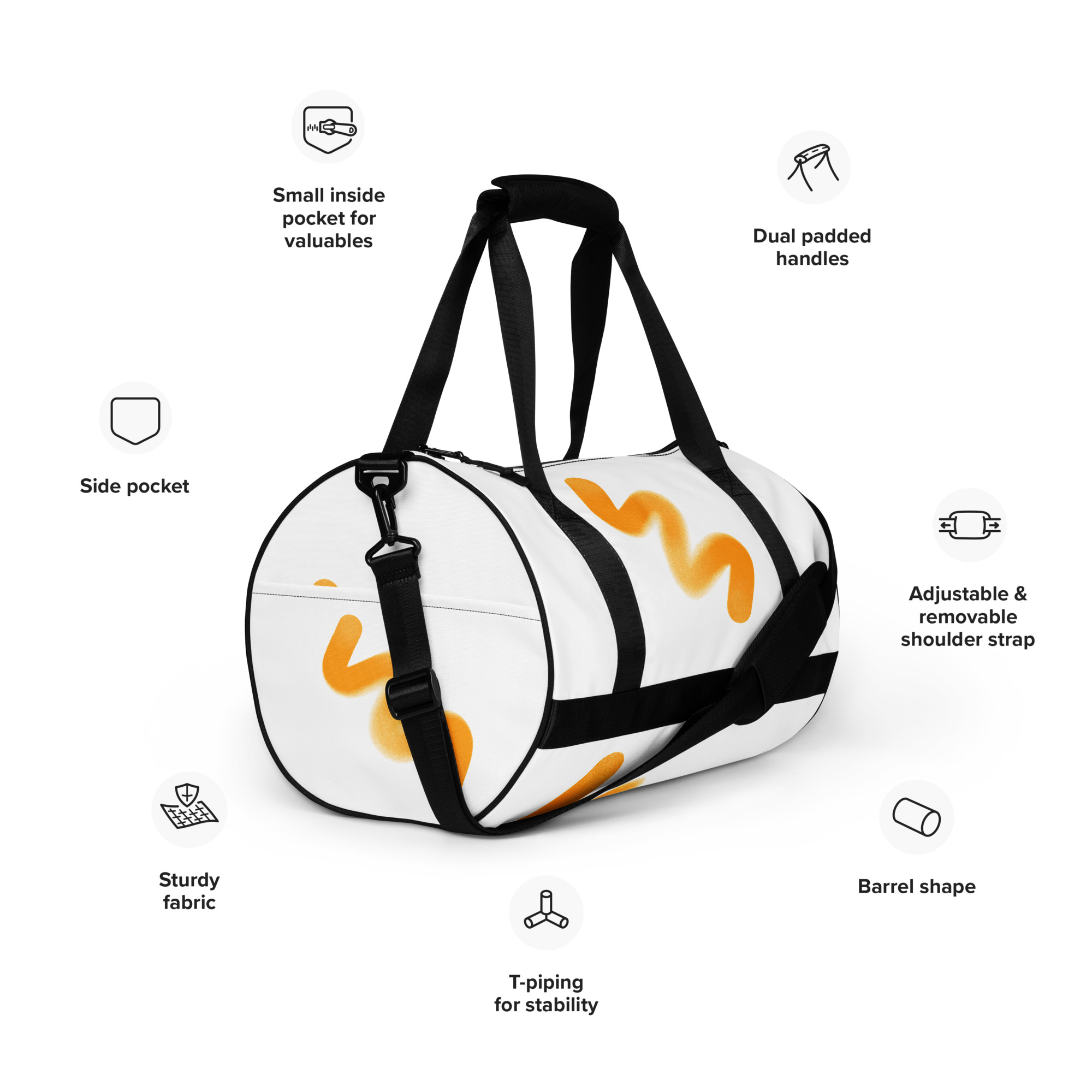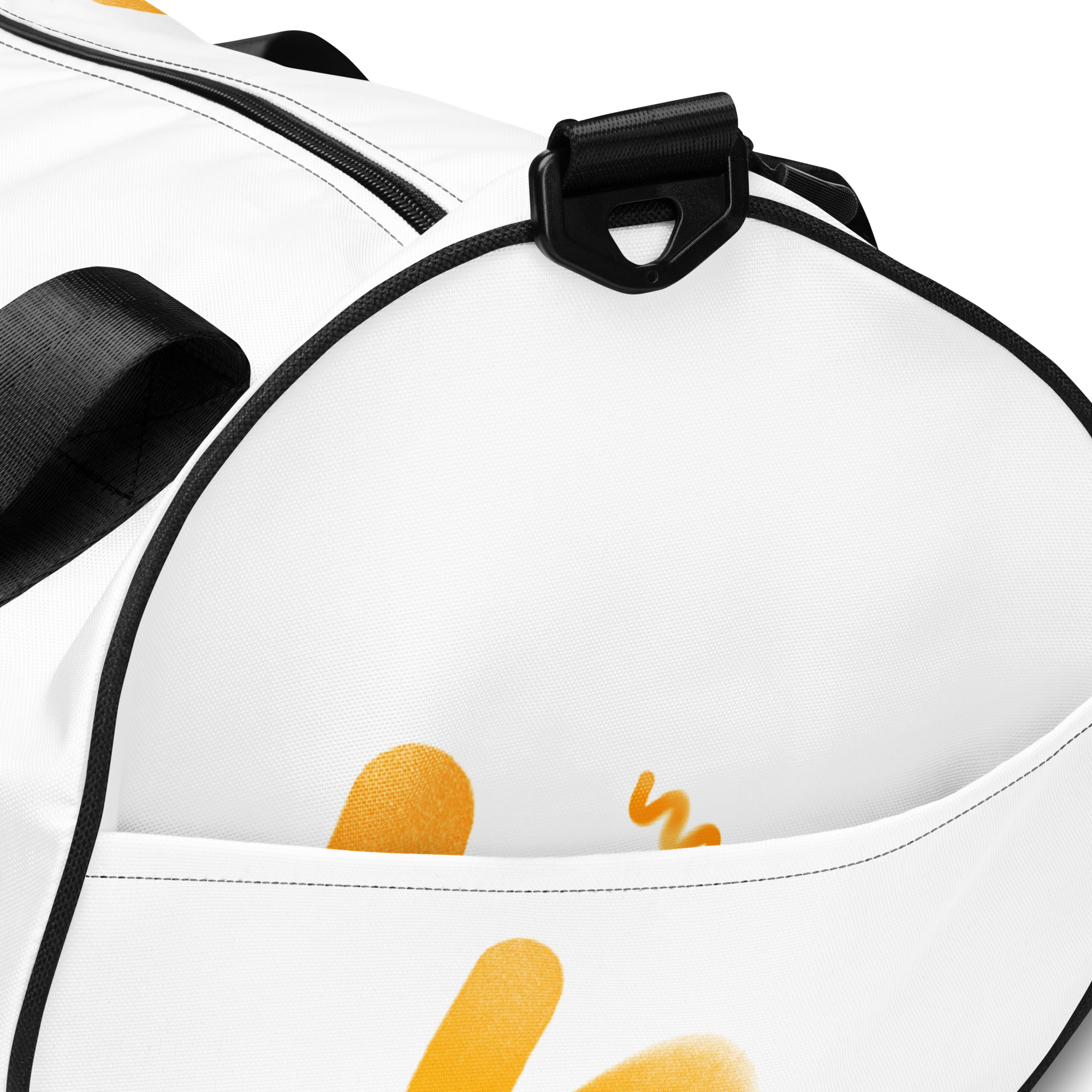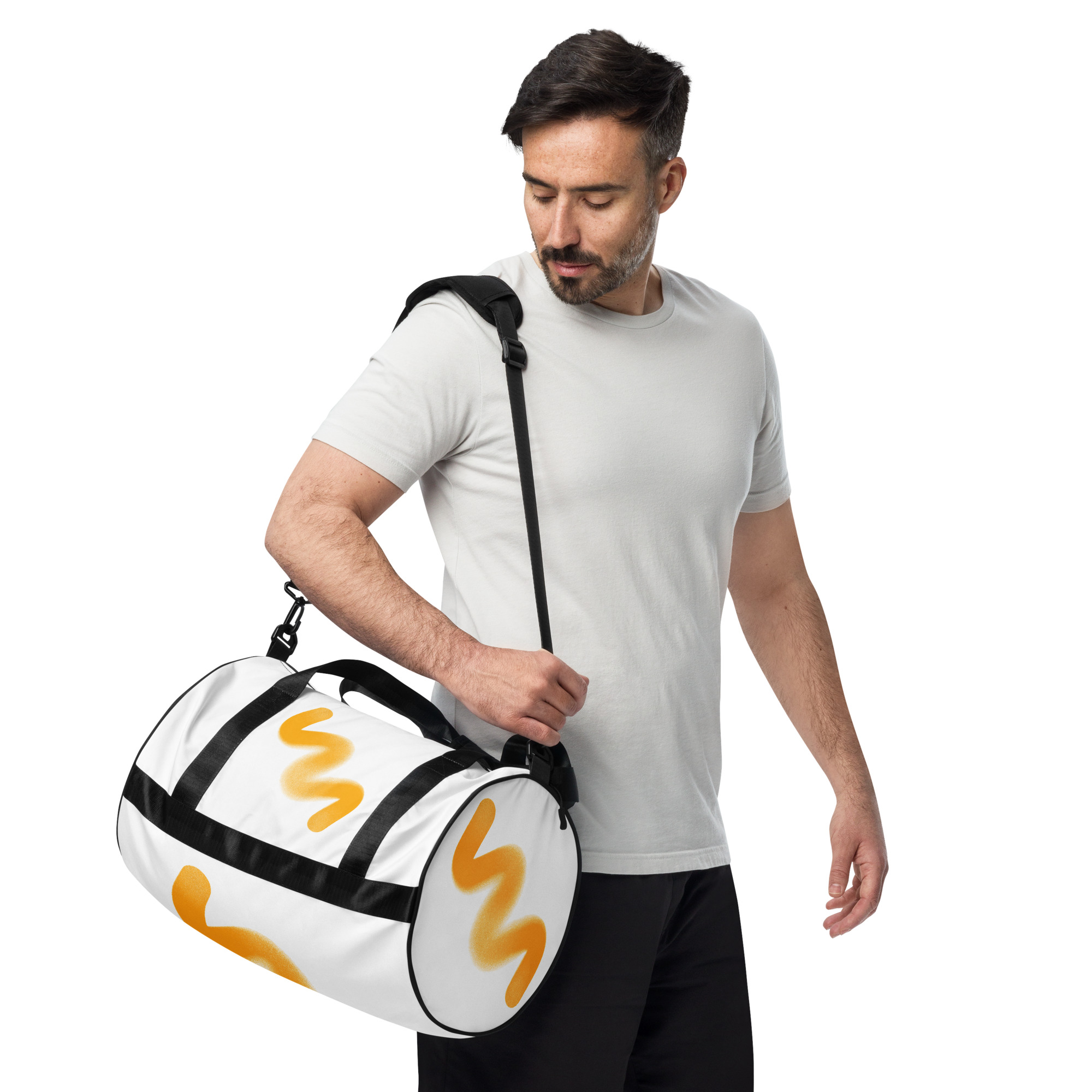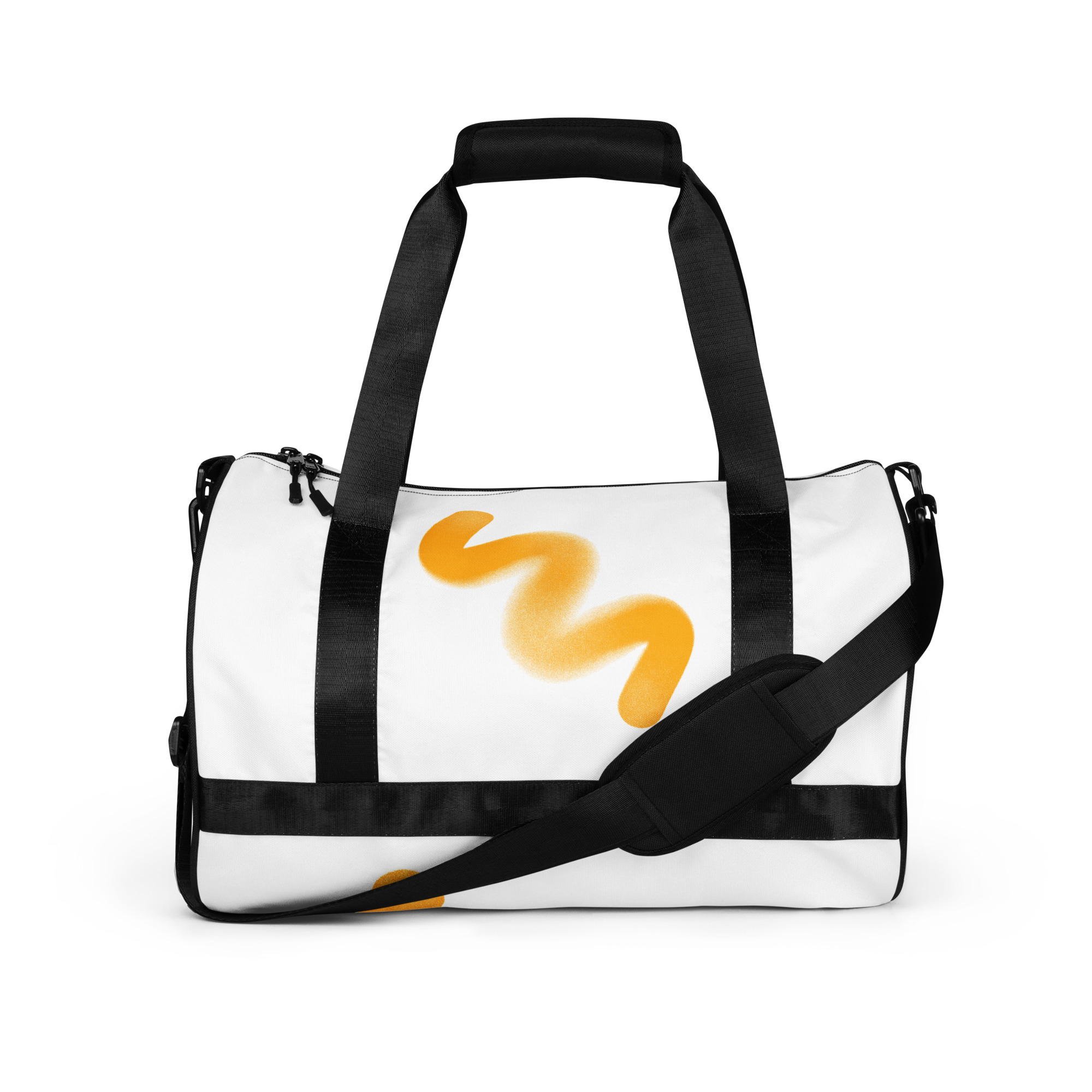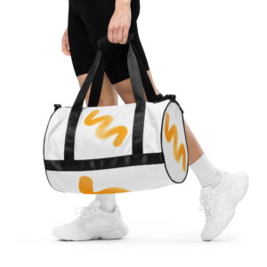 Ready to get your fitness on? Add some punch to pumping iron with this all-over print gym bag. Made from 100% polyester and sturdy, water-resistant fabric, this bag is fun meets function. And it’s got pockets!
