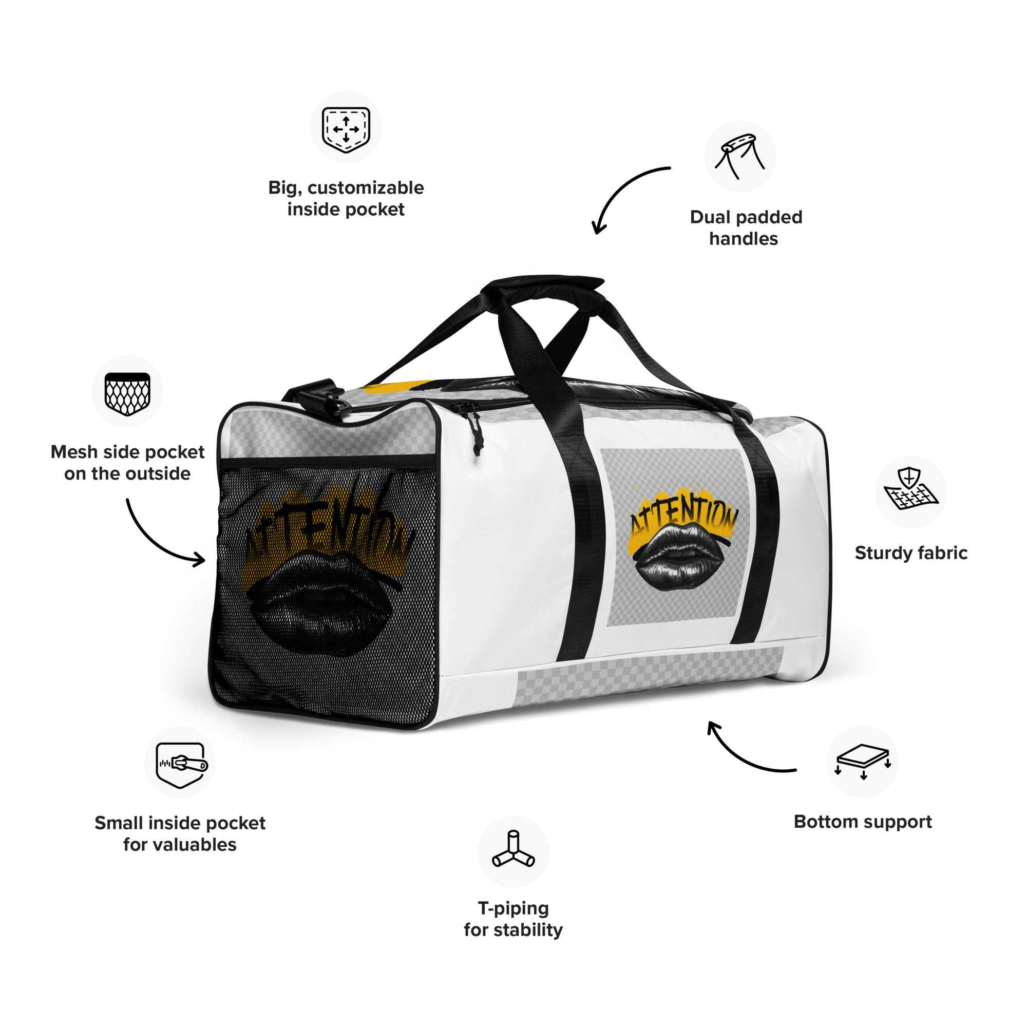 This duffle bag is the perfect companion for every occasion—take it with you when traveling, running daily errands, or going to the gym. The bag is spacious and will keep all your stuff neat and organized with its multiple pockets, including one with a zipper for your most valuable possessions. Adjust the padded shoulder strap when the bag’s helping you carry heavier things, and continue your daily run without a worry!