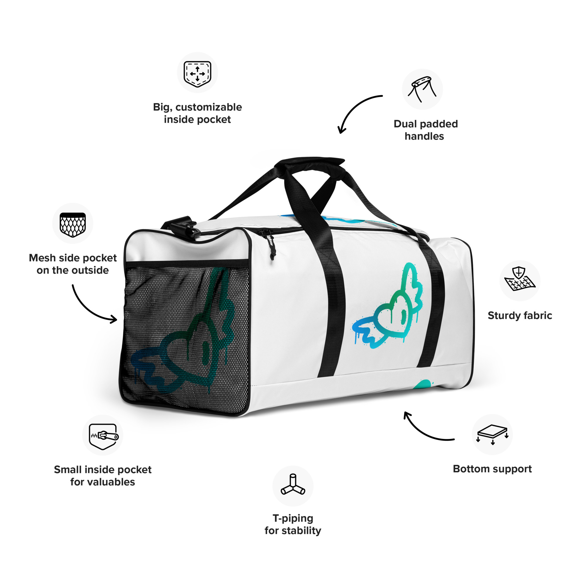 This duffle bag is the perfect companion for every occasion—take it with you when traveling, running daily errands, or going to the gym. The bag is spacious and will keep all your stuff neat and organized with its multiple pockets, including one with a zipper for your most valuable possessions. Adjust the padded shoulder strap when the bag’s helping you carry heavier things, and continue your daily run without a worry!
